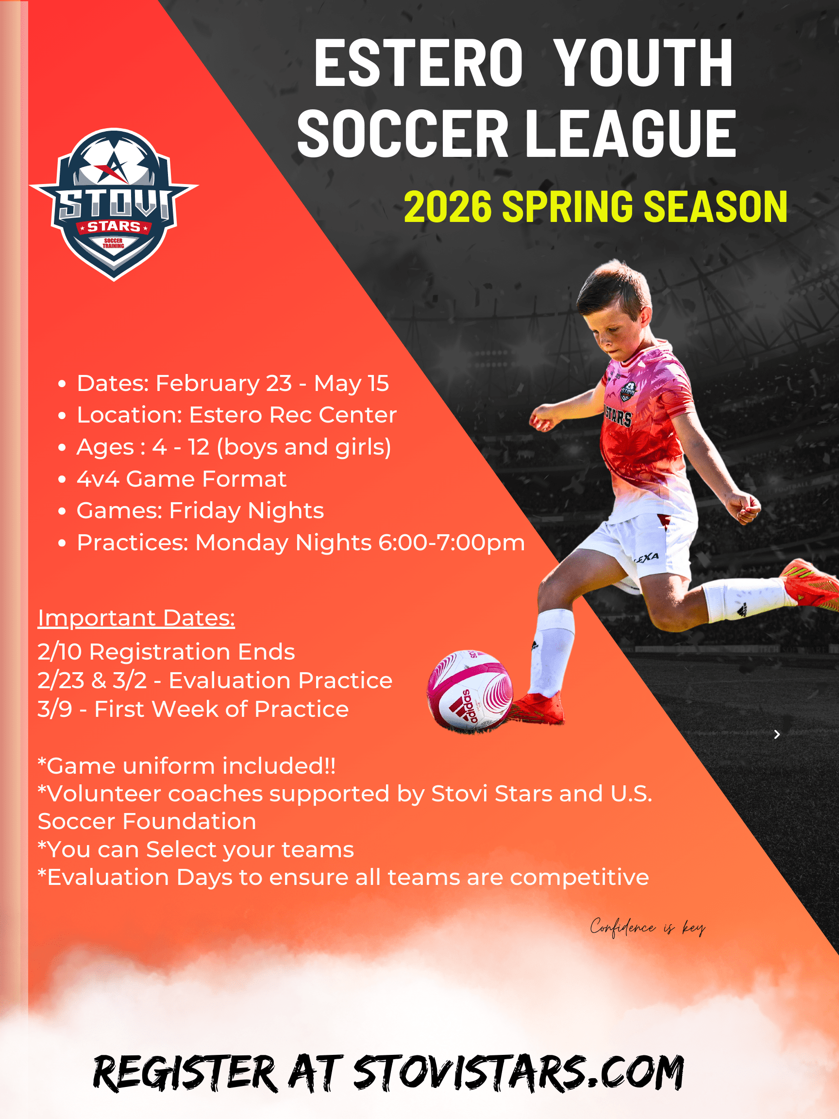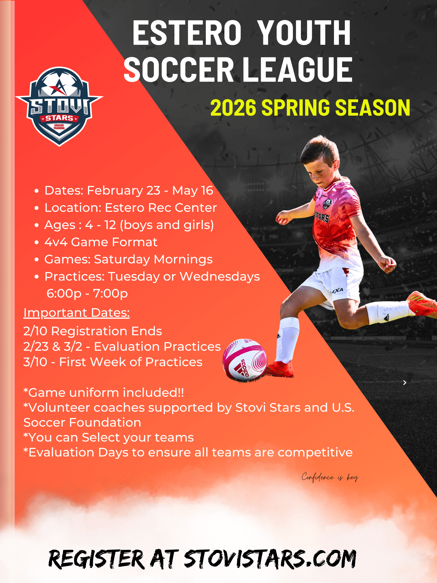 12-week league (Games and practices). Join the fun this Spring in our exciting soccer league at Estero Community Park.
